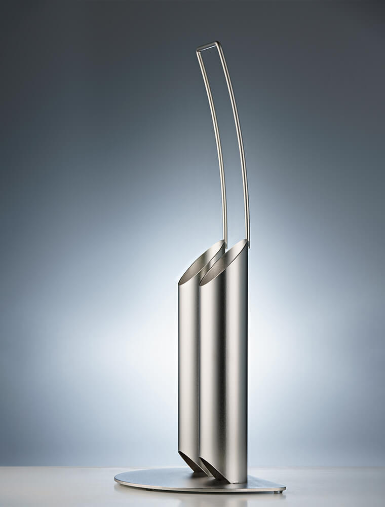 Die Oberfläche des Gehstockständers kann wahlweise poliert oder pulverbeschichtet gewählt werden.