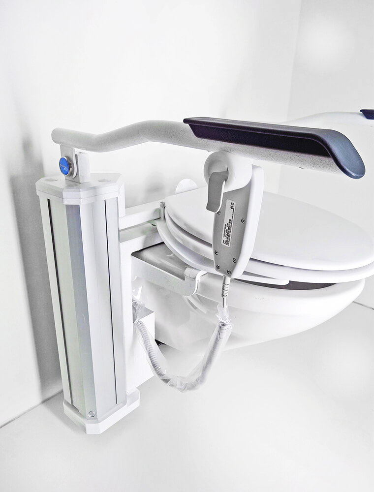 Der Toilettenlift TE-12 wird direkt auf der Toilettenschüssel montiert. Er ist elektrisch höhenverstellbar bis 30 cm und mit frei beweglichem Handschalter ausgerüstet.